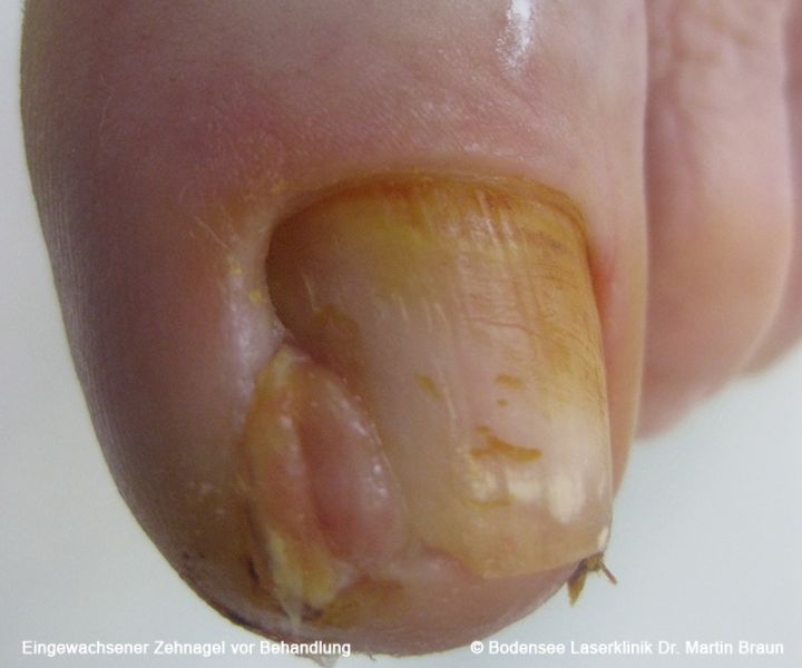 The nail is pressed into the surrounding tissue, which can lead to inflammation due to the entry of bacteria and subsequently to the development of "wild flesh" (granulation tissue). Most often the big toe is affected.